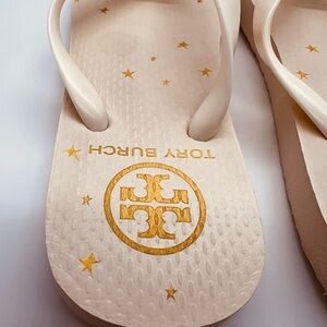 Tory Burch Cream Flip Flops with Gold Accents estimated size 6