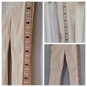 Tory Burch Cream Jeans with Embroidered Accents Size 26