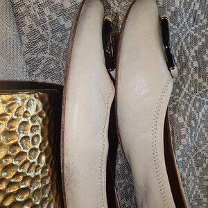 Tory Burch Cream Leather Ballet Flats w/ Gold & Enamel Logo – Size 10
