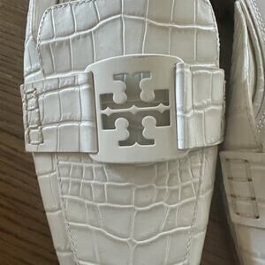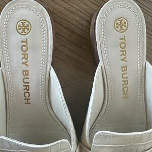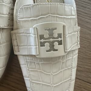 Tory Burch Cream Leather Georgia Mule Slides Shoes Logo Lux Designer Classic 9