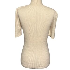 Discover elegance with this cream ribbed women's short sleeved sweater top. Wear it with jeans for a casual look or dress it up for a more work appropriate look.