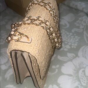 Chic woven design with elegant gold chain strap. Perfect for versatile styling. (used once)
