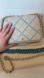 Tory Burch quilted leather crossbody with leather + gold woven chain. Truly a unique bag. Beautiful cream leather with blue accents peeking through. Excellent condition. Dust bag included.