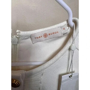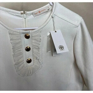Tory Burch Crepe Ruffle Placket Dress in New Ivory Womens Size 10 NWT Formal