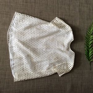 Two takes on guipure lace compose an elegant blouse left sheer at the short sleeves. Twin pleats frame the back and lend the silhouette drama.
