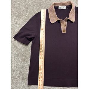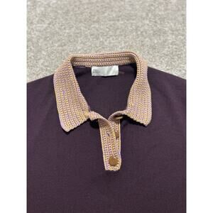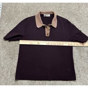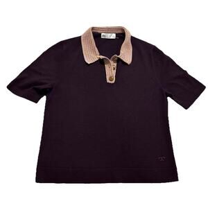 Tory Burch Crochet Knit Polo Merino Wool Wooden Button Top in Purple Size Large
