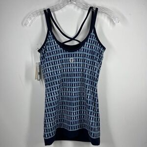 Tory Burch Cross-Back Shelf-Bra Tank Navy Blue XS