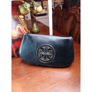 Tory Burch Crossbody Handbag Black Leather Shoulder Bag Clutch Purse Beautiful
