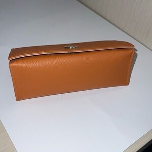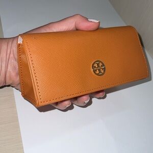Tory Burch Crossgrain Orange Leather Large Sunglasses Case Clutch