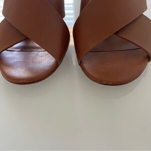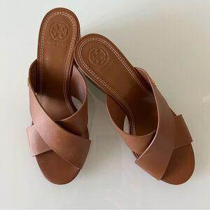 Tory Burch Crossover Sandal Wedge Slide Tan Leather Cork Heel Comfy Size 7
