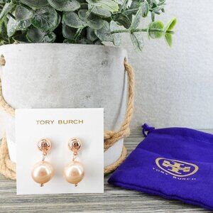 Tory Burch Crystal Pearl Drop Earrings Pink/Rose Gold OS