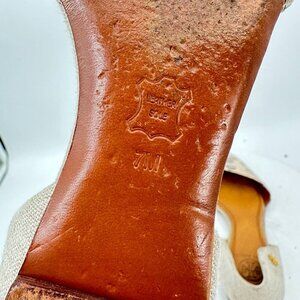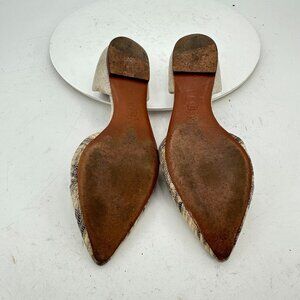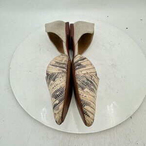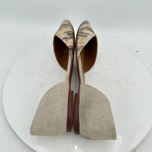 Tory Burch D'Orsay Viv Women Size 7M Lizard Leather Linen Pointed Toe Flat Shoes