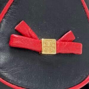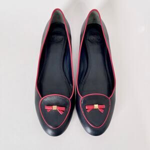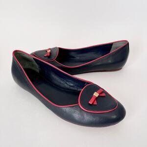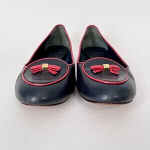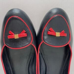 Tory Burch Dakota Bow Loafer Flats Navy Blue Red Leather Slip On Sz 9.5 Women’s