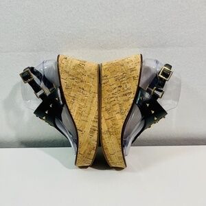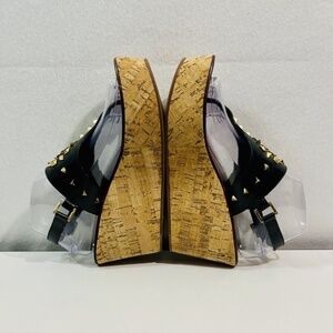 Tory Burch Dale Cork Wedge Size 8M Gold Spike Leather Thong Sandals