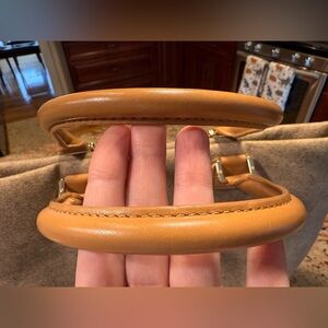 Tory Burch Dana Tote Bag/Purse, grayish beige wool/felt with camel/tan leather handles. Great condition, some faint stains on inside of purse but otherwise very very clean. No rips, holes or odors. Please see photos for item details/dimensions. Some photos may appear different in color due to lighting. Ships from smoke-free home.