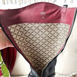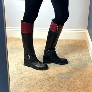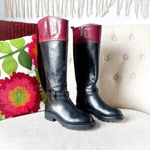 Tory Burch Daniela Riding Boots Leather Black Red 7 M $525