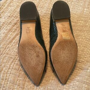 Tory Burch Dark Green Croc-Embossed Gigi Flat with Gold Accent Size 5.5
