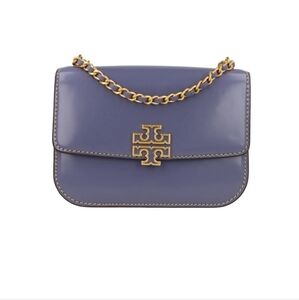 Elegant pre-owned Tory Burch lavender bag with gold chain detail. Stylish and versatile.