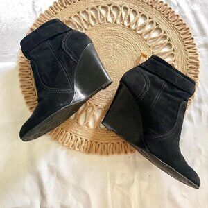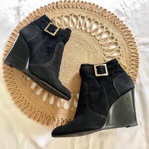Tory Burch Deana Black Suede Wedge Ankle Boots Size 8