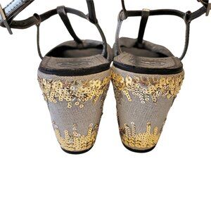 Tory Burch Declan 2 T Strap Sequin Wedges