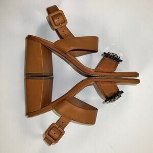 Tory Burch Delaney Embellished Sandal Camel Brown Tortoise Crystal Size 7.5M