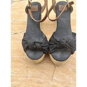 Tory Burch Designer Black Bow Wedge Espadrille Heel Size 7 KB