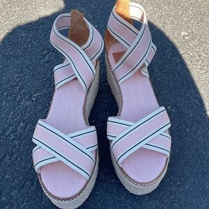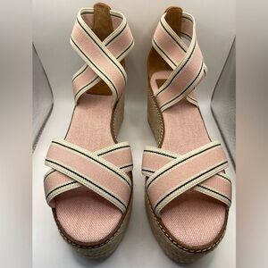 Tory Burch Designer Freida Pink Blush Espadrille Platform Wedge Heels Wedding 9