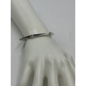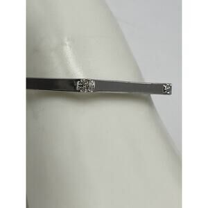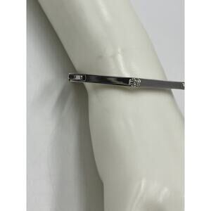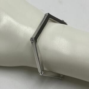 Tory Burch Designer Stainless Chic Hexagonal Hex-Logo Hinged Angular Bracelet