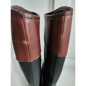Tory Burch Diana Tall Rubber Rain Boots Womens Size 6 Logo Black Brown Logo