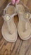 Tory Burch Dillan T strap flat sandals in royal tan patent leather. Size 10. Perfect neutral sandal. Good used condition. Some minor scuffs on edges and glitter on footbed, otherwise in really good shape. See video for exact current condition.