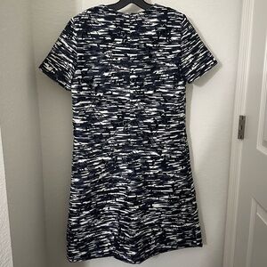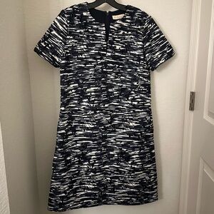 This structured shift dress by Tory Burch features a space-dyed print for an eye-catching effect.