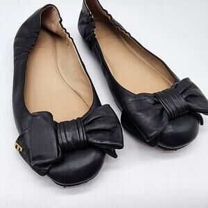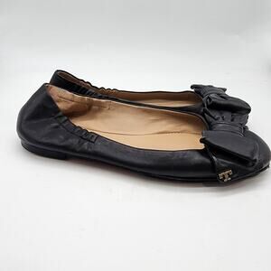 Tory Burch Divine Driver Bow Ballet Flats Black Leather Slip-on Shoes 7.5M