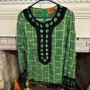 Tory Burch Dorelia Tunic Top geometric print with crochet detail size 12