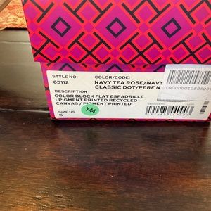 Tory Burch Dot navy block flat espadrille,navy tea rose, sz 5,BNIB,MSRP$200