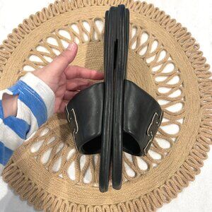 These are gently used Tory Burch Double T Sport Slide Perfect Black Gold Leather Size 11. In very good condition. There is signs of wear on insoles near heel. See all pics for condition.