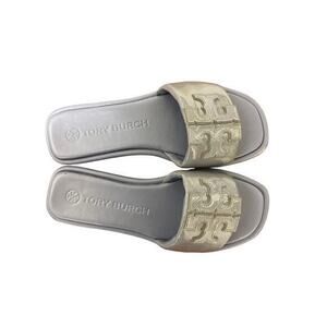 Tory Burch Double T Sport Slide Sandal in Blue Patent Leather Size 7.5