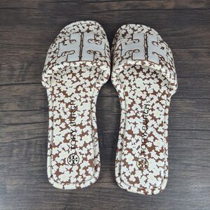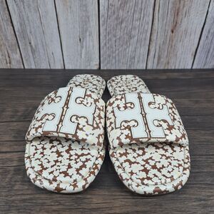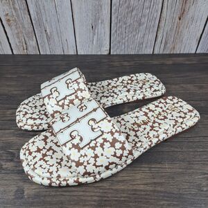 Tory Burch Double T Sport Slide Tumbled Leather Floral Print Women's Sz 9 (VGC)