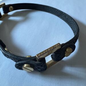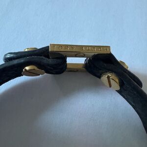 Tory Burch Double Wrap Black Leather Gold Accents Logo Snap Bracelet 13-16"