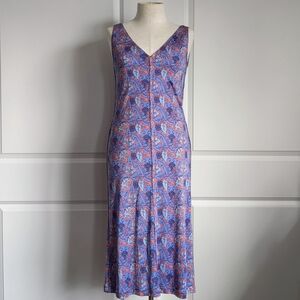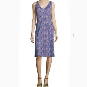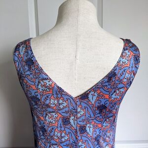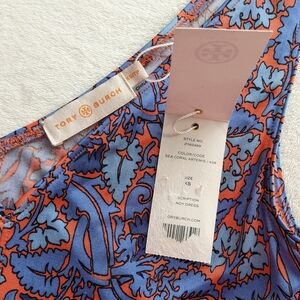 Tory Burch Dress 100% Silk Sheath Sleeveless V-Neck Floral Blue Coral XS NWT