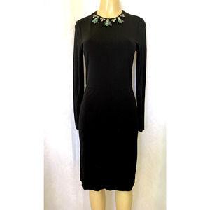 Tory Burch Dress Deena Beetle Embellished Jeweled Sheath Knee Length Bla…