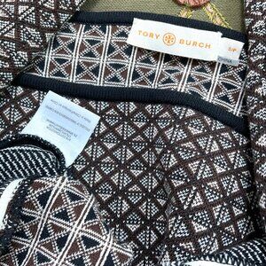 Tory Burch Dress Knit Brown Black Geometric Print Cotton Blend (S)