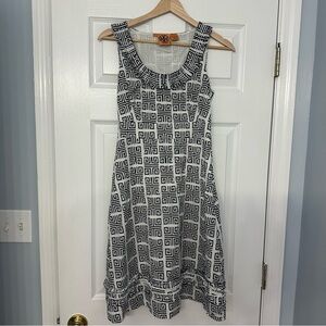 Tory Burch Dress Mini Shift Black White Geometric Designer Size 2 Extra Small