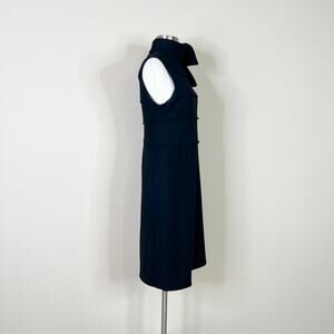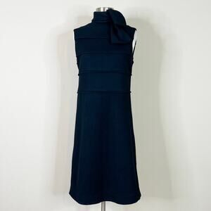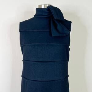 Tory Burch | Duncan Black Wool Tie Neck Designer A Line Solid Sleeveless Dress M