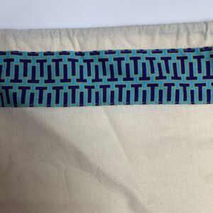 Elevate your accessory organization with the Tory Burch Large Dust Storage Bag, featuring a sophisticated blend of beige and teal. This canvas and cotton bag is adorned with a medallion, pull charm, and the iconic Tory Burch logo, providing a touch of luxury to your storage needs. Its generous square dimensions (23.5x22.5) ensure your handbags and accessories are protected in style.