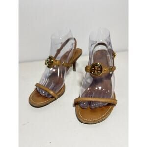 Tory Burch EUC Tan Leather Mira 70mm Logo Slingback Sandals Size 8.5