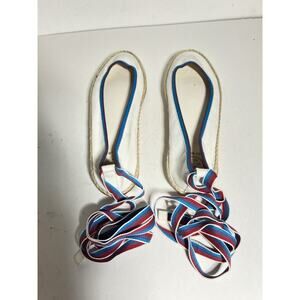 You are bidding on a pair of Tory Burch 3-D Ballet Sneakers, size 7, white with red/white/blue ankle wrap, excellent used condition.