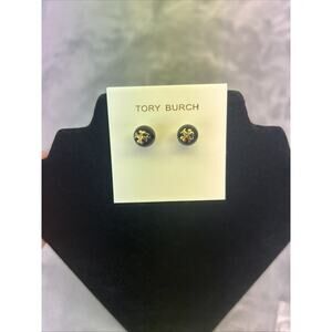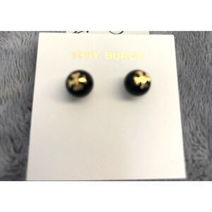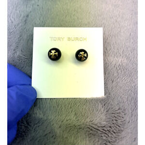 Tory Burch Earrings Black Pearl w/ Double-T Logo in Gold Studs 3/8 New Designer