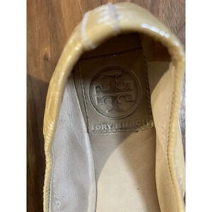 Tory Burch Eddie Logo Bow Patent Ballerina Flat, Nude Size 7