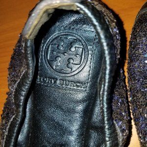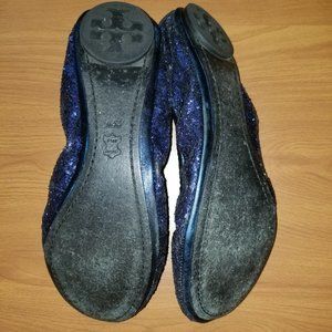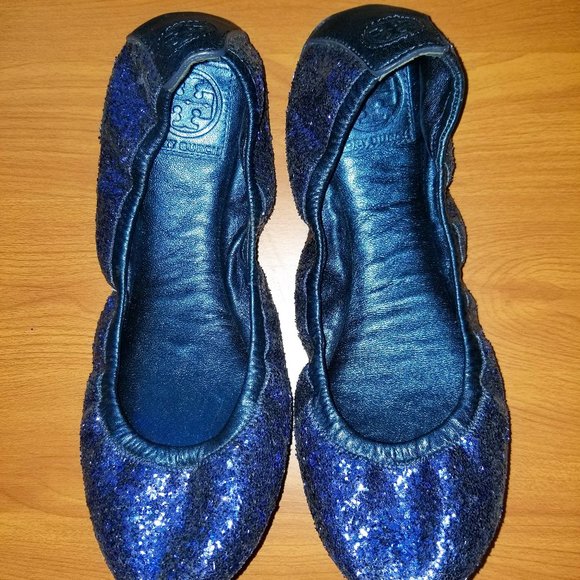 Tory Burch Eddie flat. Navy blue glitter. Size 8. GUC. No scuffs or missing glitter areas. Cute & comfy pair of flats. Feel free to ask questions. Thx for looking!