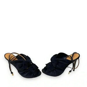 Tory Burch Eleanor 105mm Suede Bow Knot Heeled Sandals in Navy Blue Size 8.5